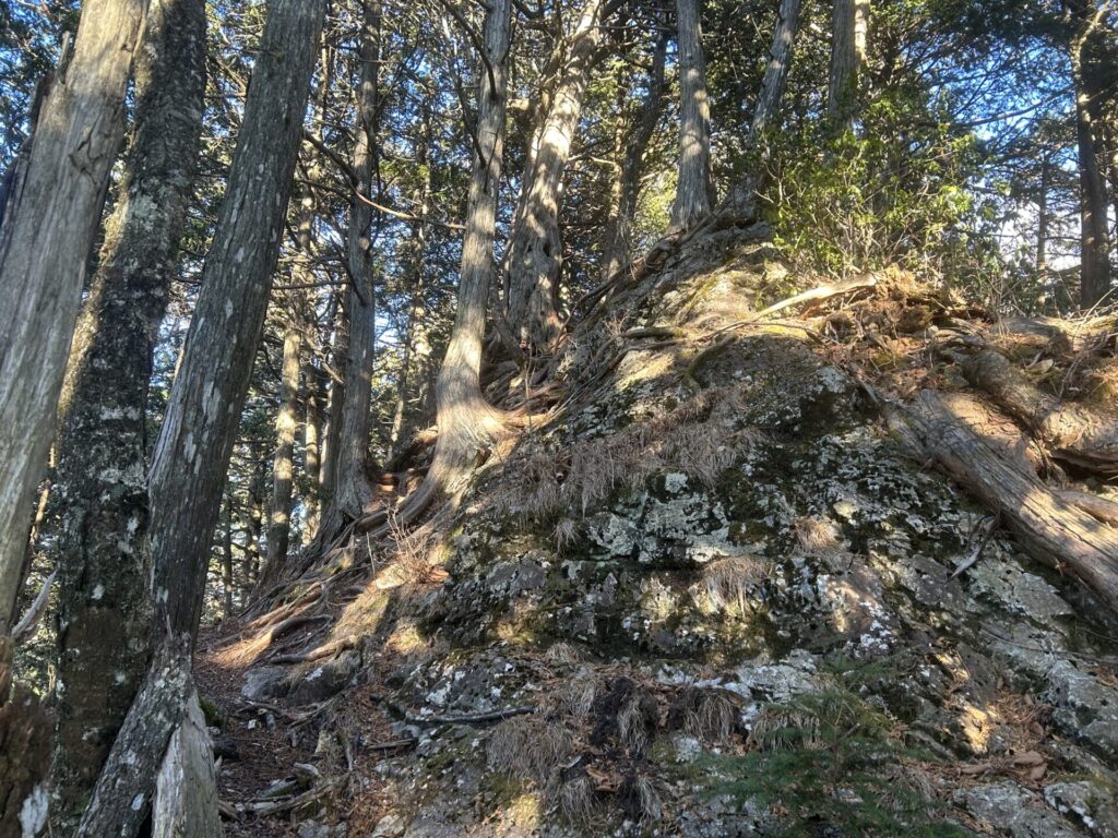 山頂から一杯水方面に進むと、まさかの険しい登り返し。