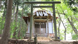 左脇の道からこの神社を通り過ぎた辺りで、裏手に回るような下り坂(抜け道・舗装路)を抜けると登山口です。